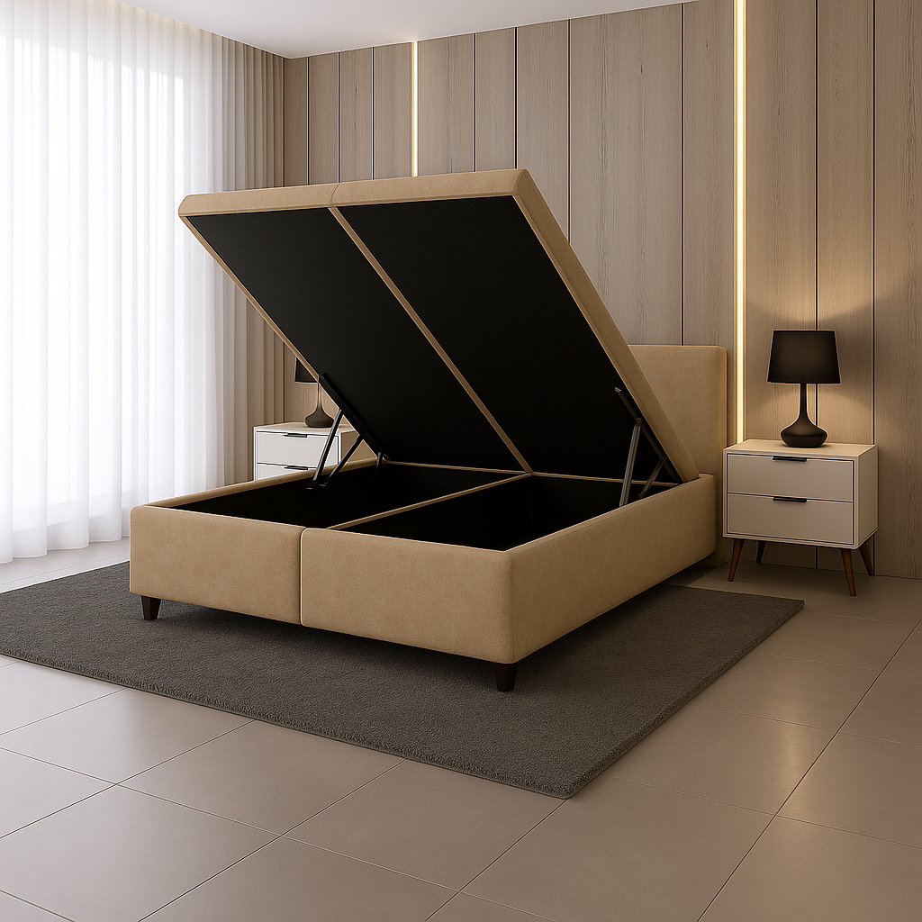 A Base Box Baú Bio Flex combina funcionalidade, beleza e praticidade, sendo a solução perfeita para otimizar espaço com elegância e alto padrão de acabamento.