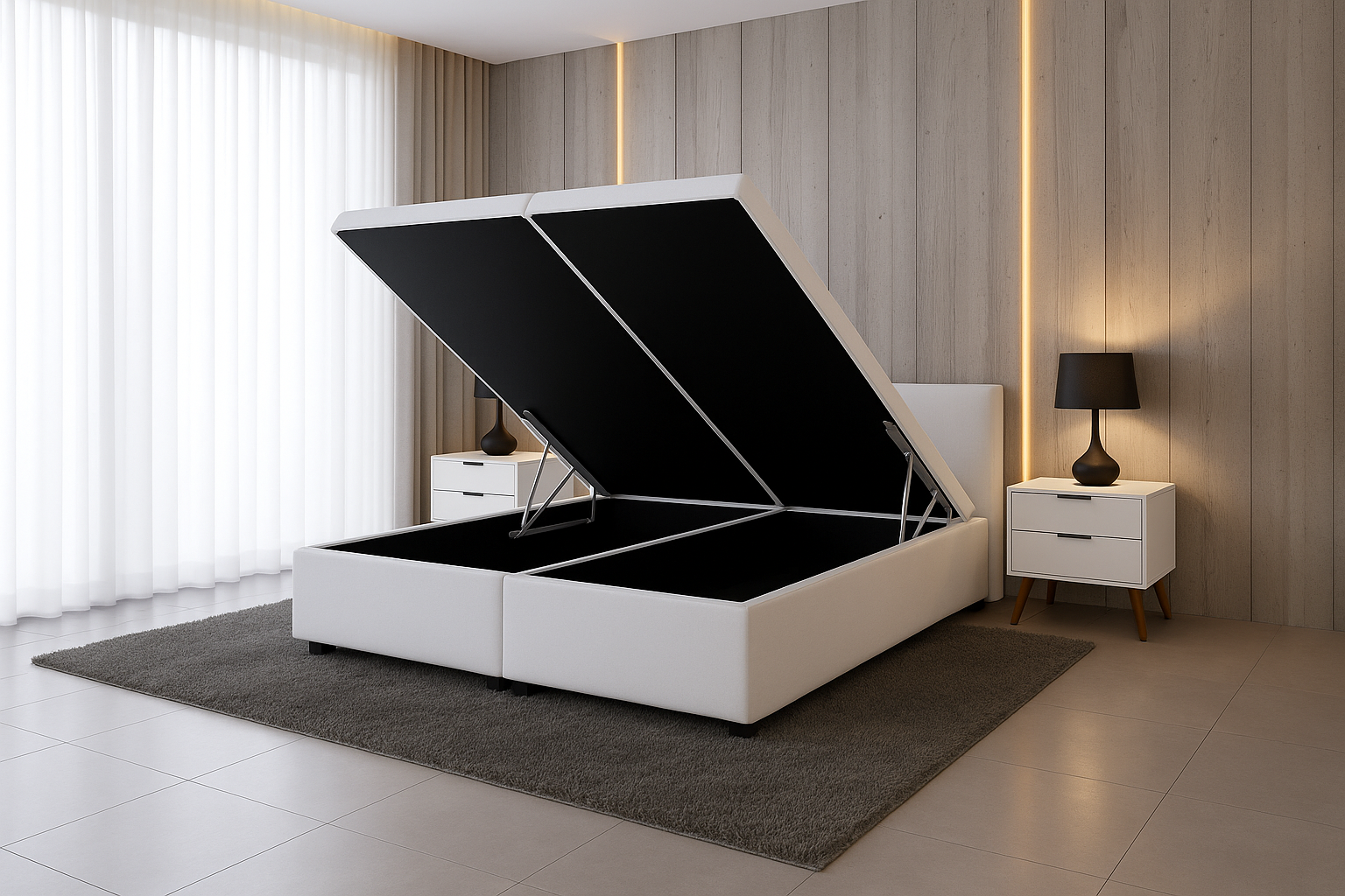 A Base Box Baú Bio Flex  combina funcionalidade, beleza e praticidade, sendo a solução perfeita para otimizar espaço com elegância e alto padrão de acabamento.
