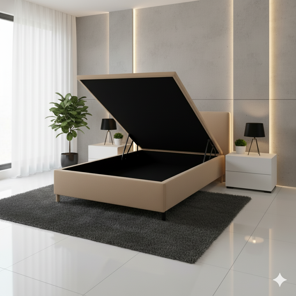 Além disso, o produto conta com tratamento antiácaro e antialérgico, oferecendo mais higiene e segurança para seu descanso. Ideal para quem busca espaço extra para guardar roupas de cama, mantas ou itens pessoais de forma discreta.