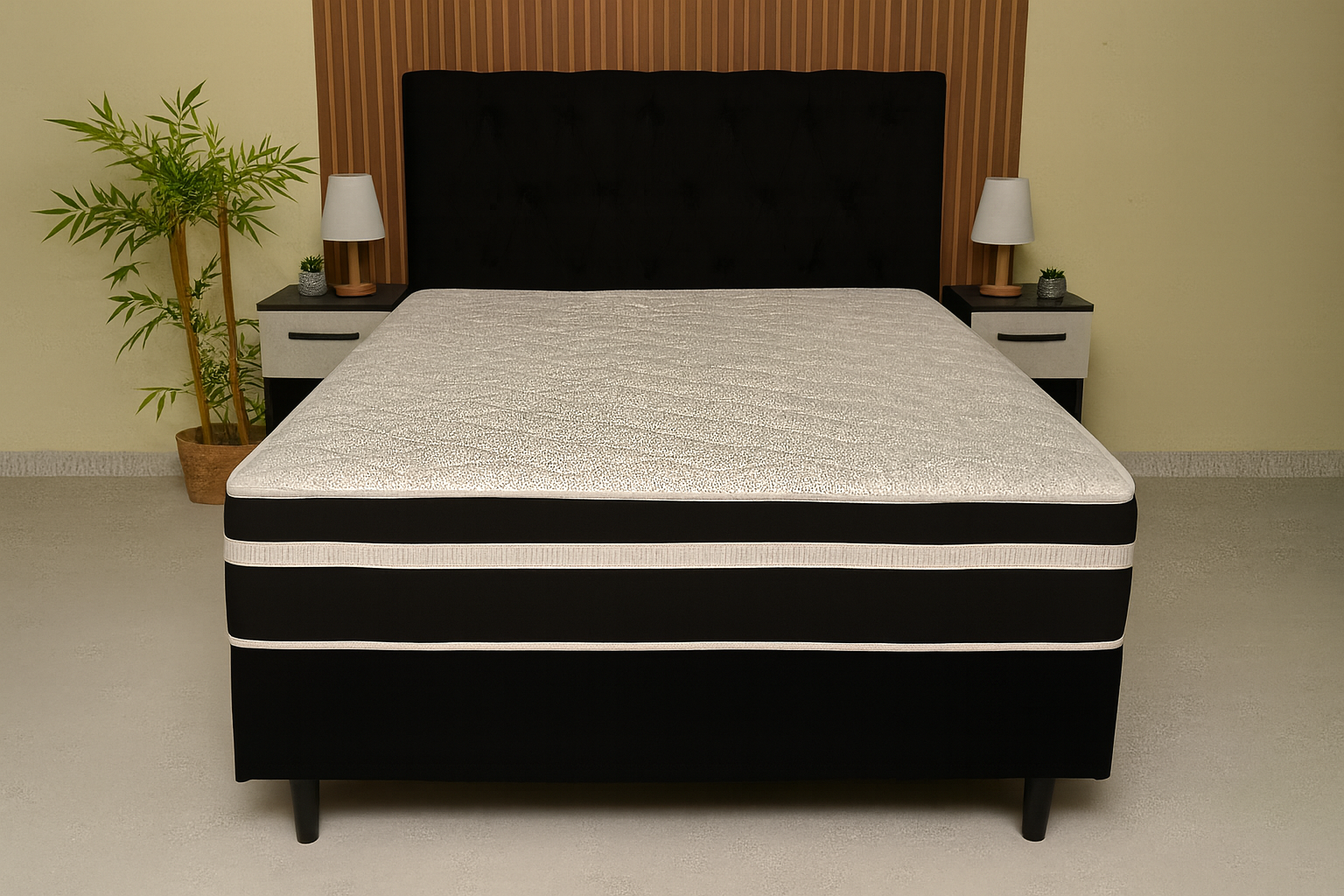 A Cama Box Conjugado Casal Spring Molas é ideal para quem busca suporte e durabilidade com um acabamento sofisticado. Produzida com materiais de alta qualidade, ela oferece um descanso confortável e um visual moderno para seu quarto.