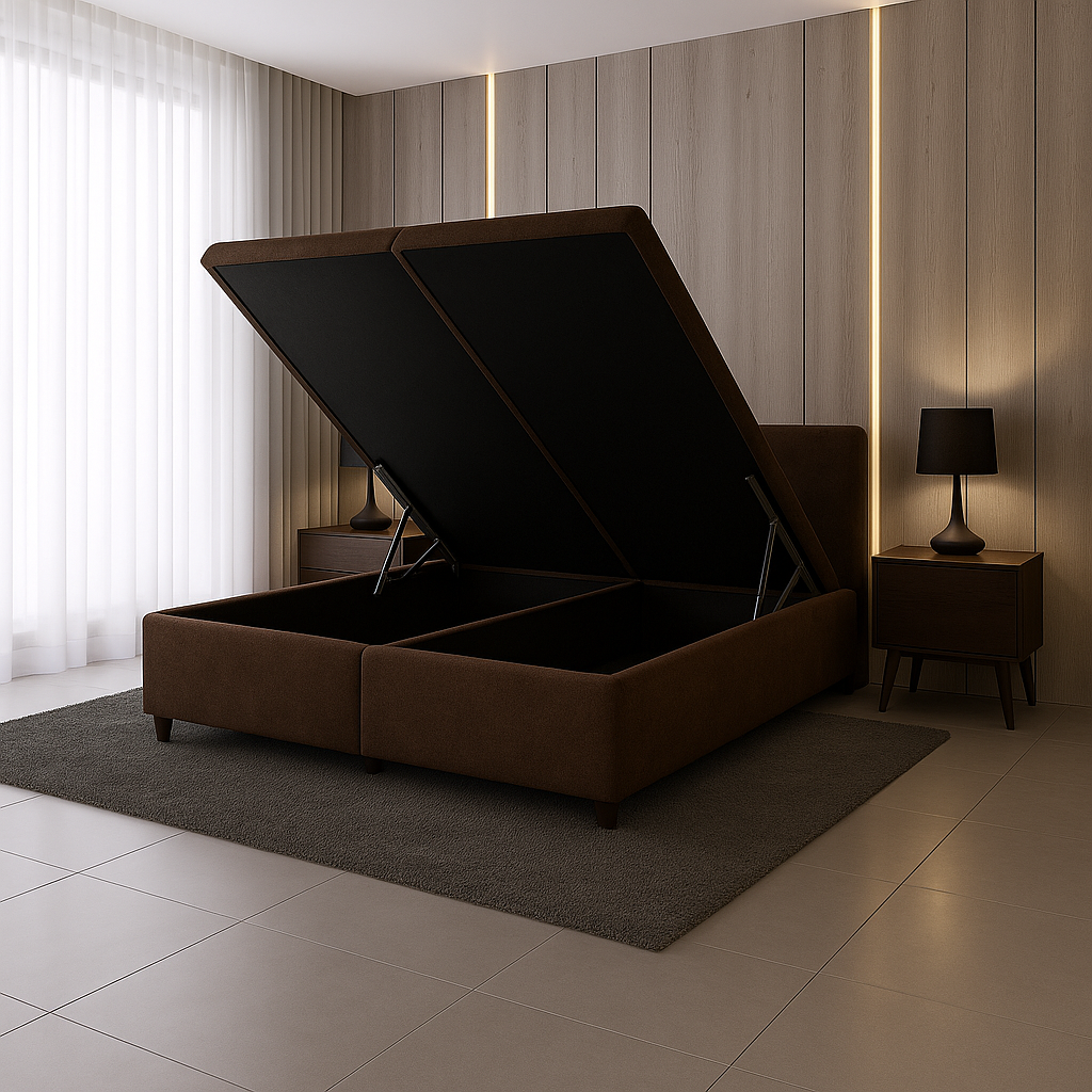 A Base Box Baú Bio Flex combina funcionalidade, beleza e praticidade, sendo a solução perfeita para otimizar espaço com elegância e alto padrão de acabamento.