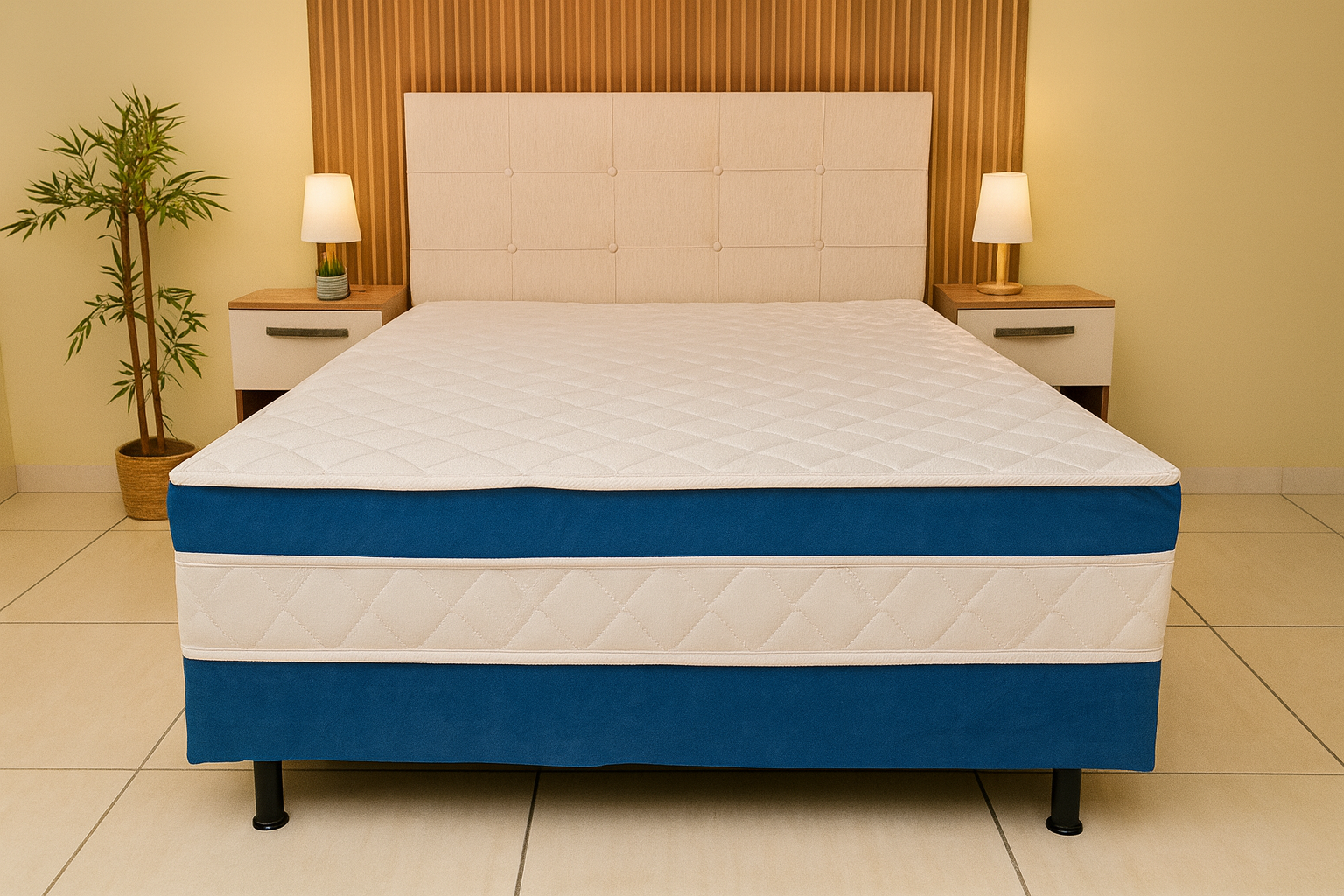 A Cama Box Conjugado Casal Spring Molas é ideal para quem busca suporte e durabilidade com um acabamento sofisticado. Produzida com materiais de alta qualidade, ela oferece um descanso confortável e um visual moderno para seu quarto.